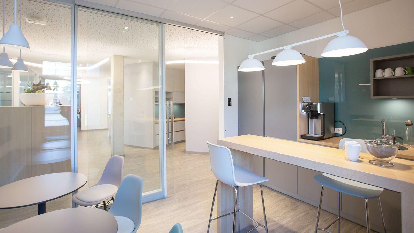 Die Büro- und Konferenzstruktur drumherum ist durch Glastrennwände transparent und lichtdurchflutet. Dabei sorgen die hohen Schalldämmwerte unserer Glastrennwände für die nötige Diskretion.